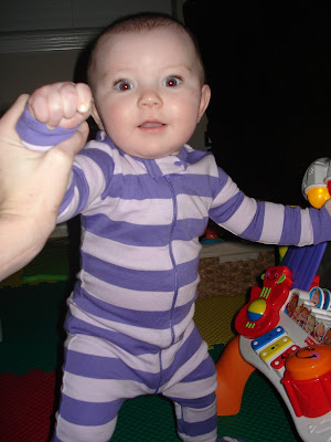 reese learned to stand with help, get into crawling position, laugh at toys, roll over better, sit up in the bath tub, open presents, eat paper, place food in her mouth from her tray, and many more things. it is so fun to watch her grow, we are so thankful for our baby reese!